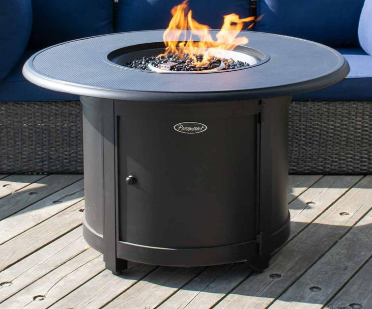 This Carbon Collection Round Aluminum Fire Table will provide additional heat and ambiance in your backyard. With up to 50,000 BTUs, this table is sure to extend your summer season in both directions. The wood grain texture blends nicely with the a natural and more rustic setting. The black finish would help this fireplace find a home even in more modern backyards. For use with either propane or natural gas, this fire table is truly versatile. Check out the Rectangle Aluminum Fire Table.